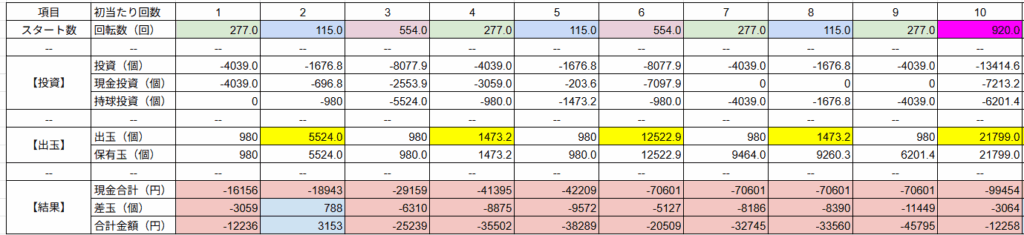 結果としては平均通りですので、細かいロスを抜きにすれば差玉はほぼ0になります。