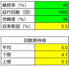 今のと同様に次はラッシュ平均継続回数で、今回の場合は継続回数「1.9回以内」が50%で発生します。
