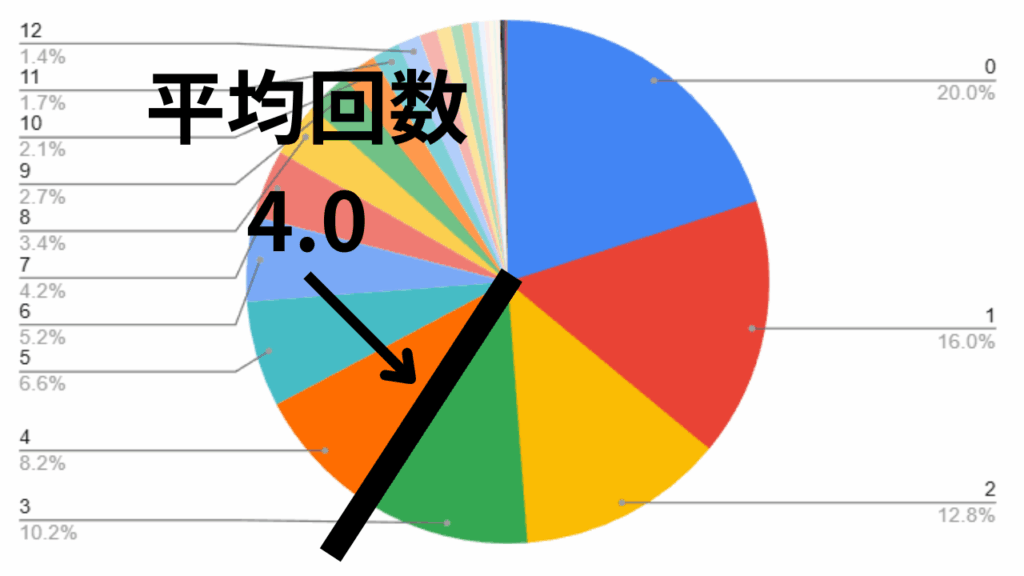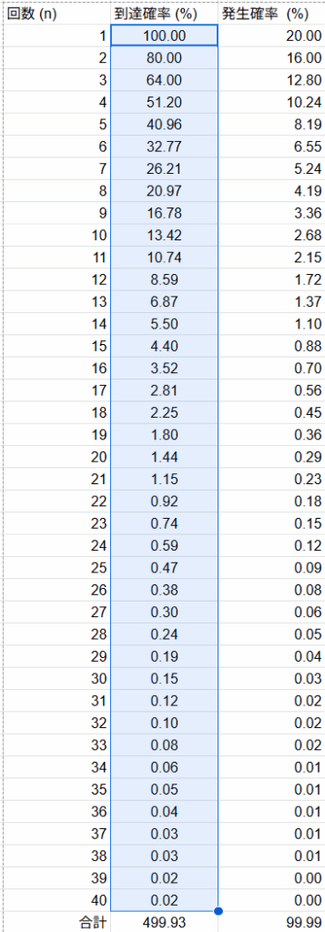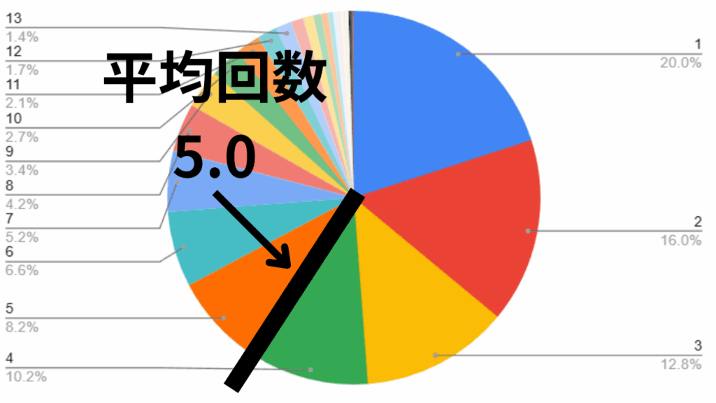 この到達率は、この回数にたどり着く可能性の数値かです。