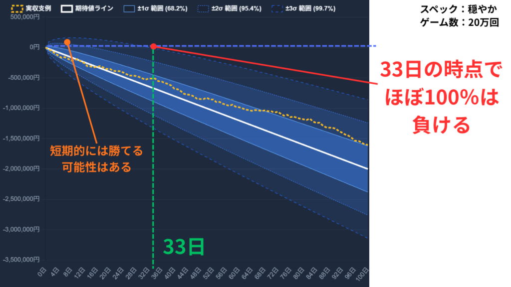 100日で平均して200万円負けます