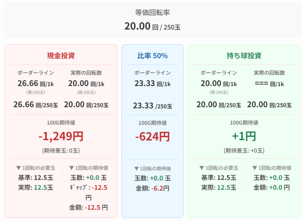 持ち球での遊技比率が高いほど期待値が高くなる