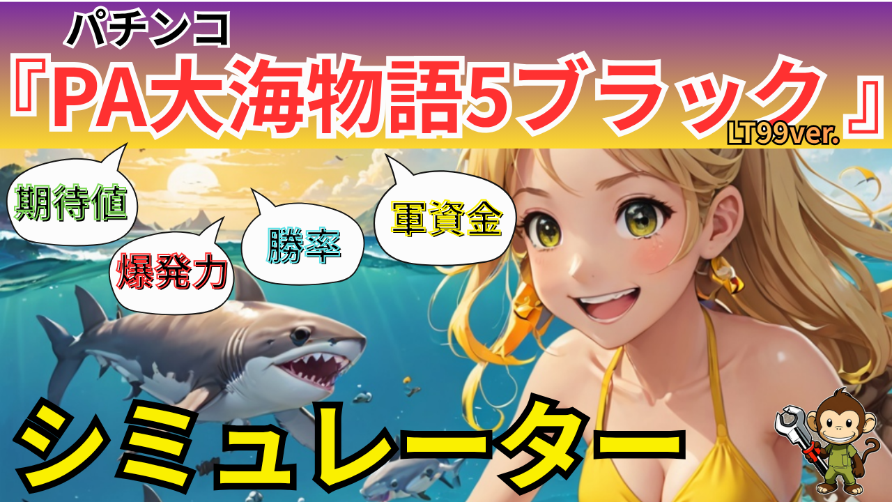 パチンコ新台『PA大海物語5ブラックLT99ver.』無料シミュレーター|期待値・爆発力・勝率・軍資金を一発計算!