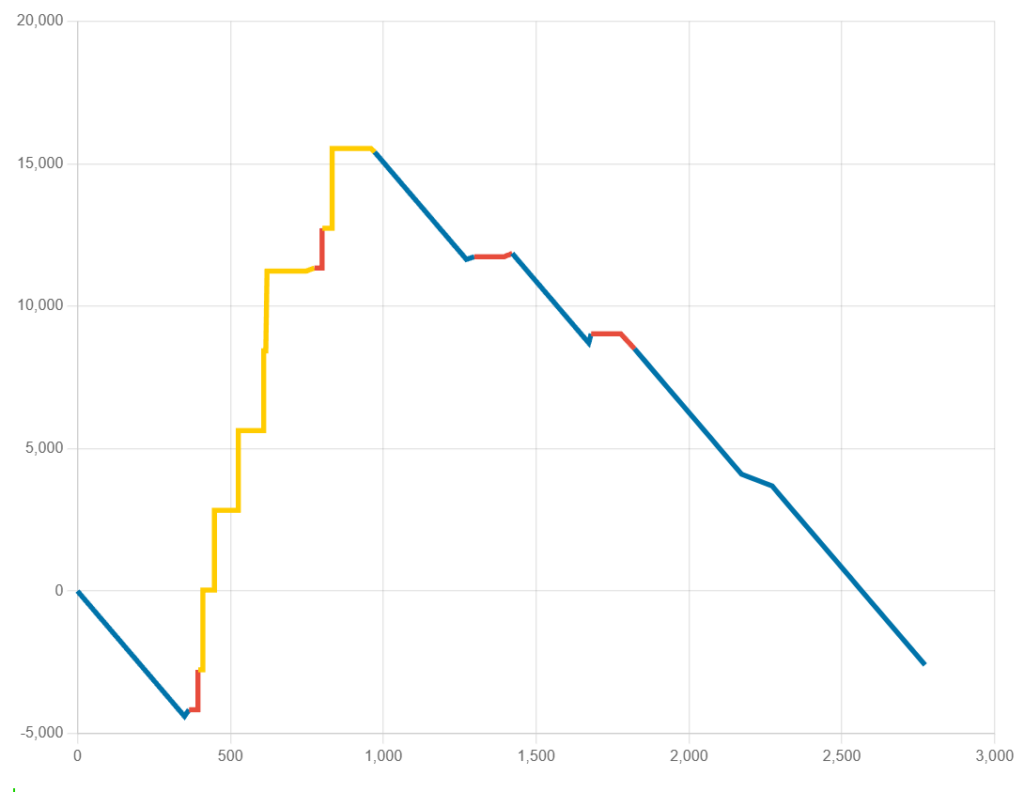ただそこまでたどりついても、STスルーしているケースもありました。グラフの黄色が水平になっている部分です。