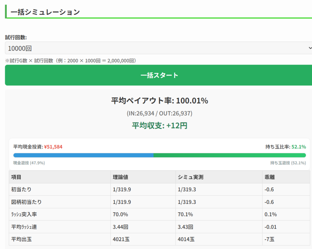 ご自身のホールにあった数値が欲しい場合やボーダー+1ならどうなるのかなど気になるかたは、ネットでシミュレーターを無料開放していますので、自由に確認してみてください。