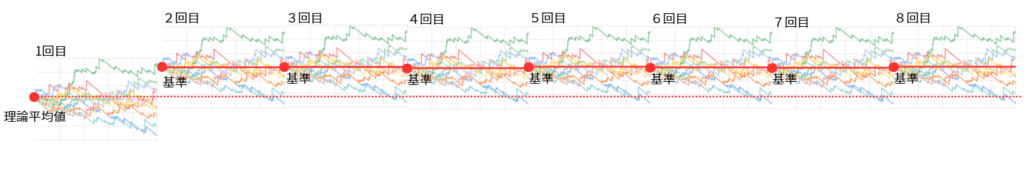 収支は確率的に基準に対して「真っ直ぐ進みやすい」