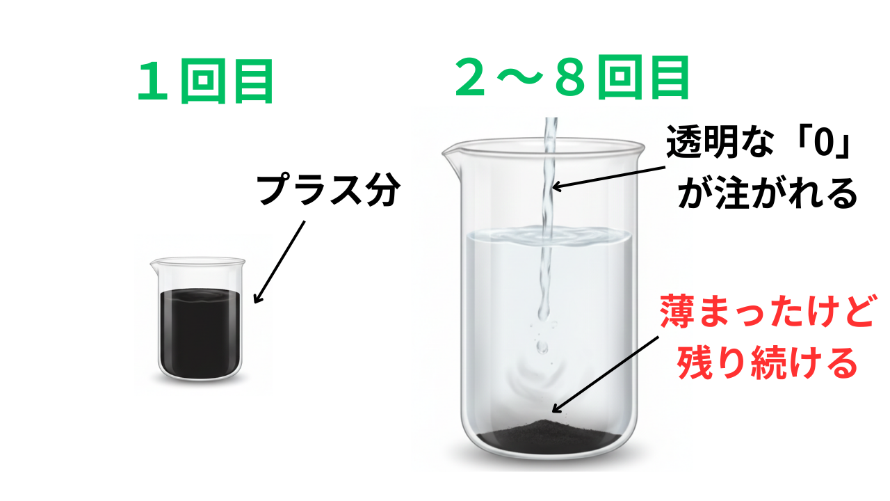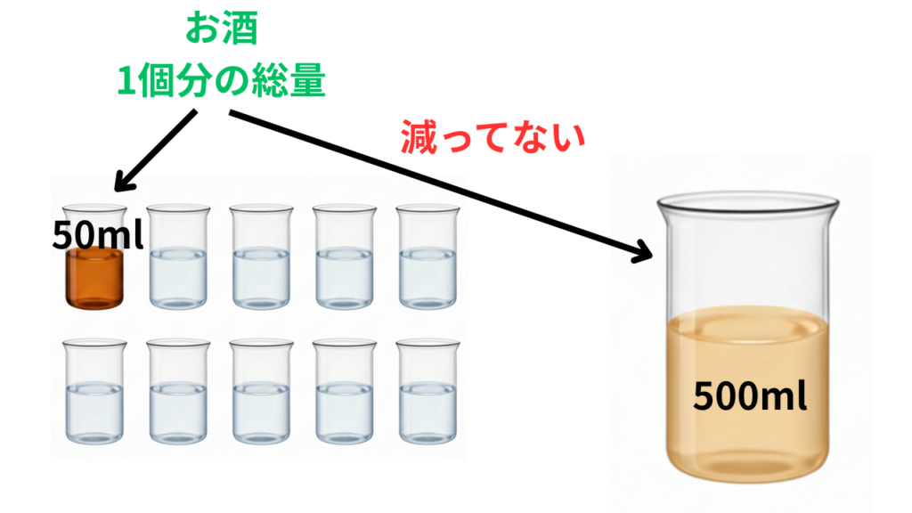 - お酒を水で割ってどんどん濃度を薄めて近づけているようなもの
