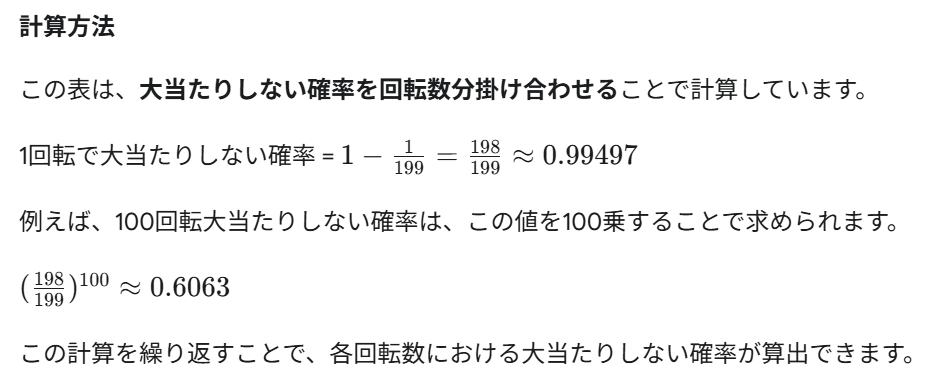 これは1回転で当たる確率ですので、毎回この確率で当たるか外れるかを抽選しているということ。