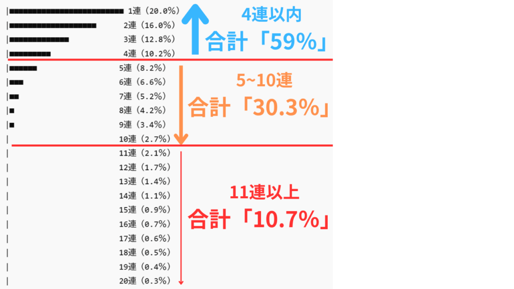 ここからは、みなさんがもっとも欲しいであろう「爆連の確率」を見てみます