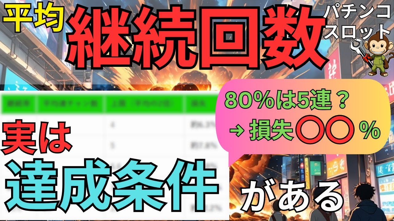 結論としては継続率80%の場合「台の平均」が5連というのは間違いないですが、「みなさんの平均」が5連になるには「爆連」という「条件を達成」しないと、「台のスペック」的に届かないということになります。