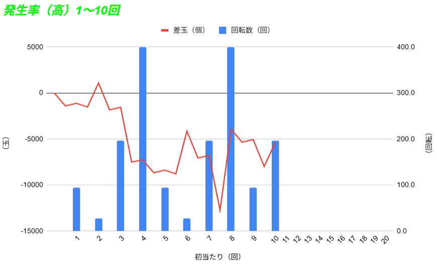 「後半」の11から20回が、残り10%の数値を組み込んだ、「発生率が低いレアな展開」です。
