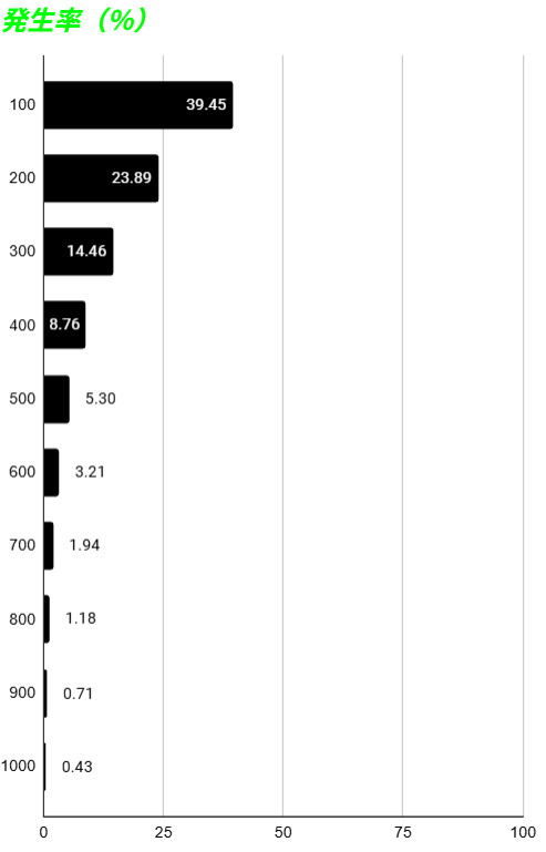 今回のグラフは、こうした発生率が高い90%以内の数値を抜粋して割り振ることで、よりリアルに近い「発生率が高い展開」になっています。