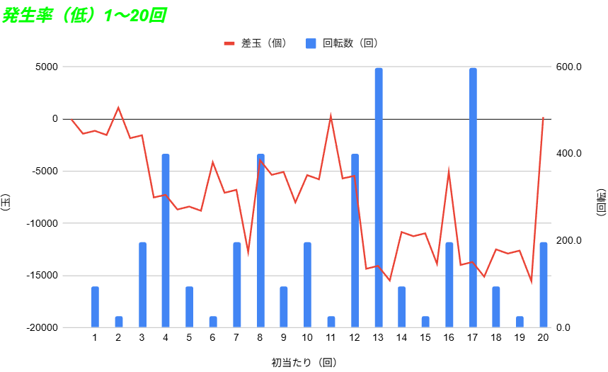 ですので初当たり20回のうち、「大ハマり2回」,「大連チャン1.1回」といった感じです。