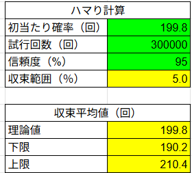 - 大当たりはスタート約「30万回転」で、理論値である「199回」へほぼ収束。