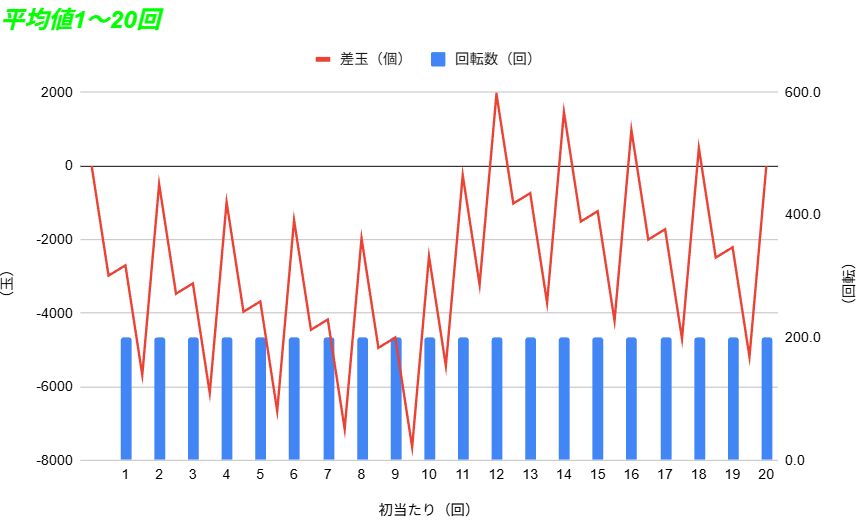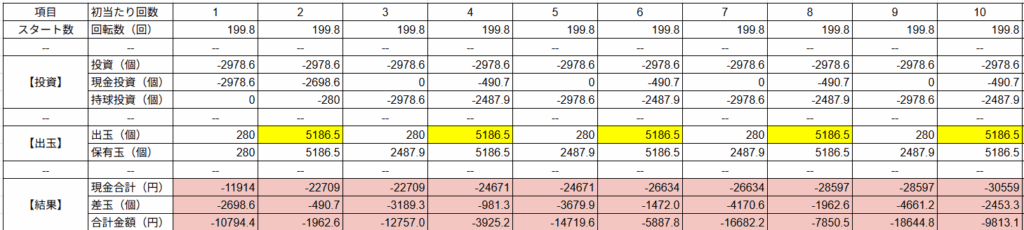 ですがトータルとしては平均値以下となり、差玉で言えばマイナス5300個。