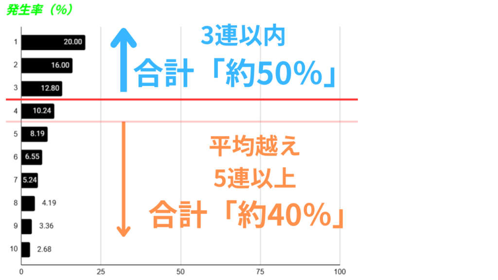 たとえば継続率80%の大当たり継続回数の発生率で、大きさ順に並べると